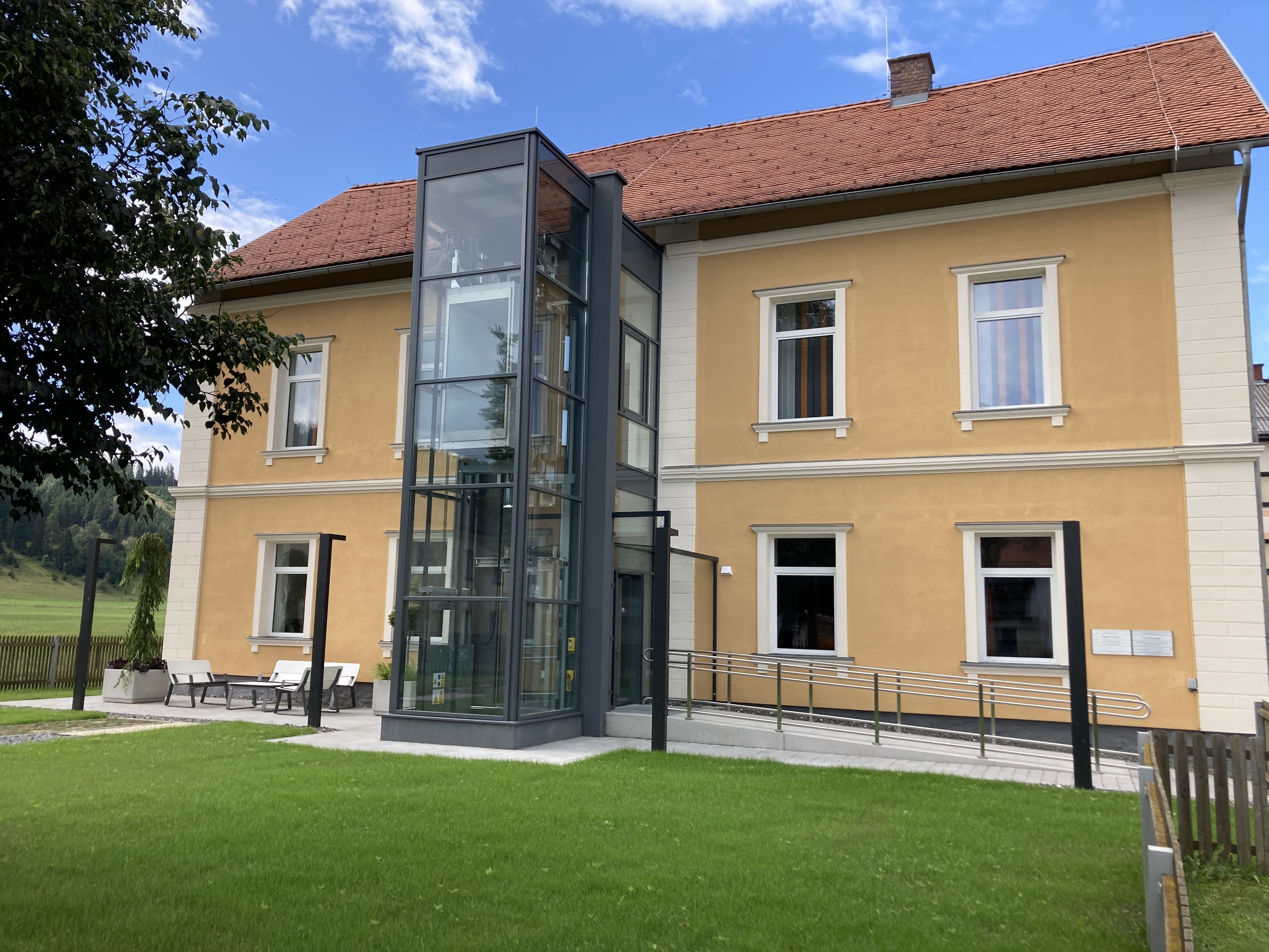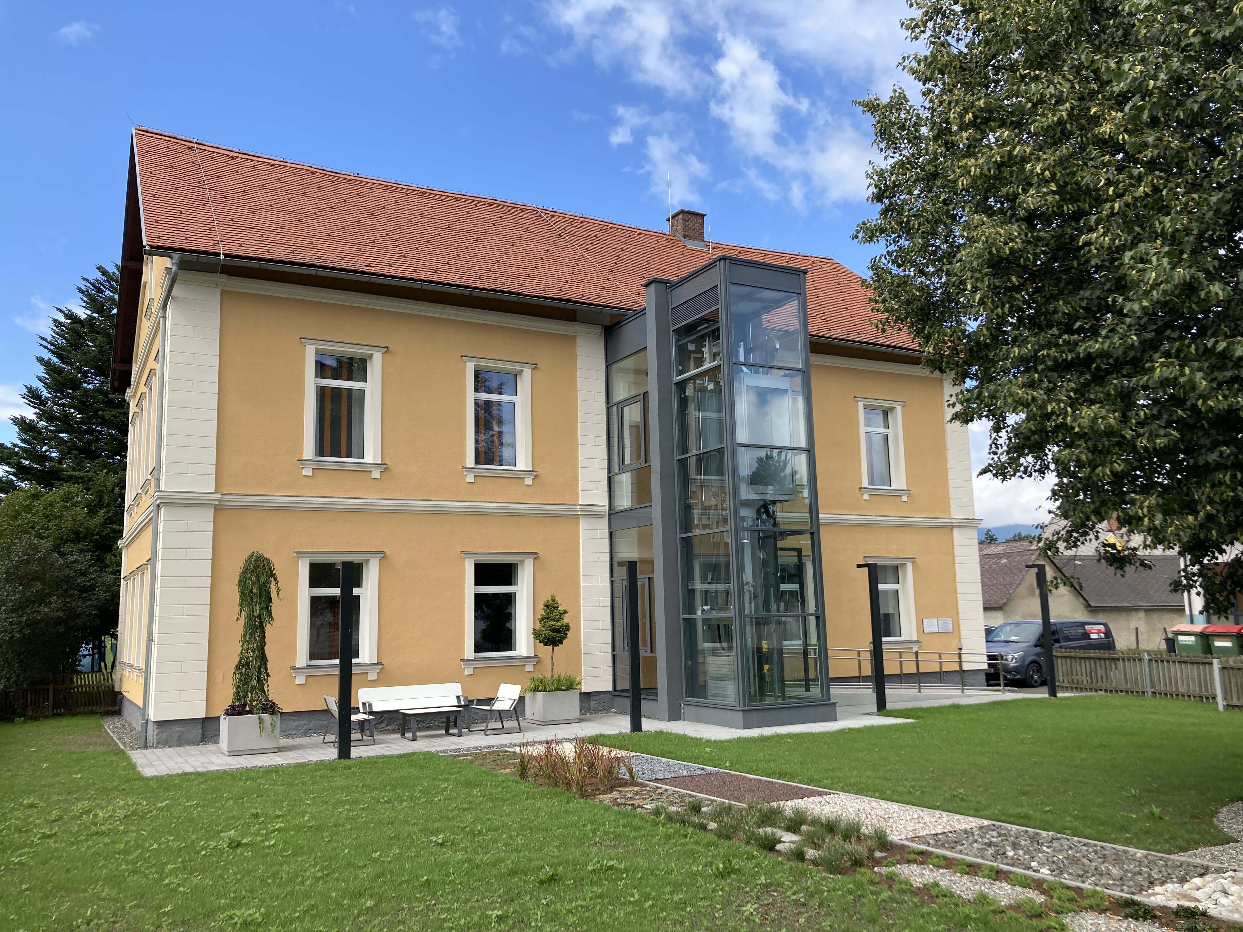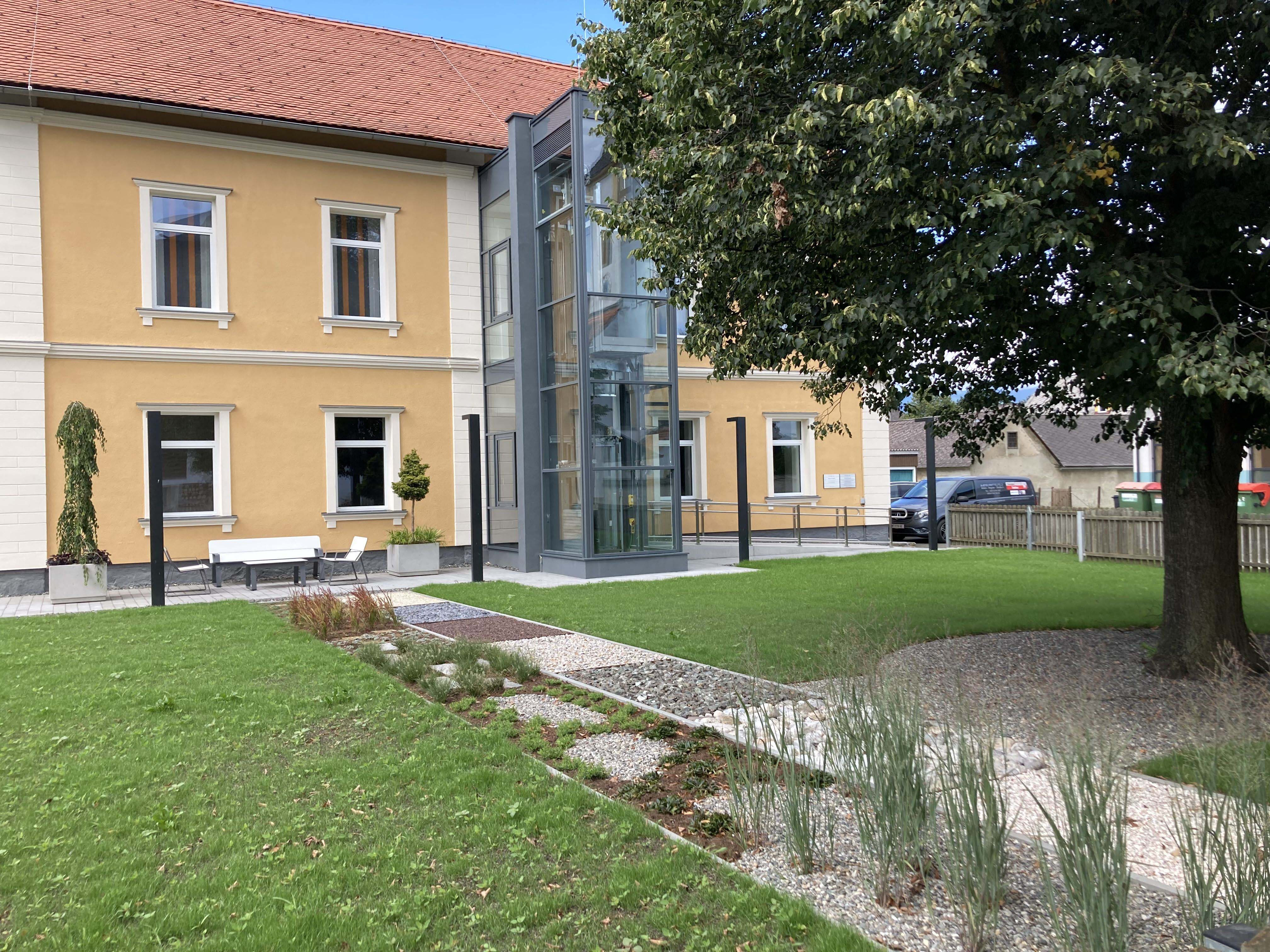 Die ehemalige Volksschule St. Lorenzen wird in ein Gesundheitszentrum umgebaut, das Erscheinungsbild bleibt in seinem Stil erhalten. Die Baumaßnahmen beschränken sich vornehmlich auf Um- und Sanierungsarbeiten im Innenbereich, sowie den Zubau eines freistehenden Liftes. Im Bereich des Haupteinganges werden die bestehenden Stufen abgebrochen und durch den Anbau eines Windfanges sowie eines Liftes in beiden Geschossen ersetzt. Die Höhendifferenz zwischen bestehendem Außenbereich und dem fertigen Fußbodenniveau des Erdgeschosses wird mit einer behindertengerechten Rampe überwunden.