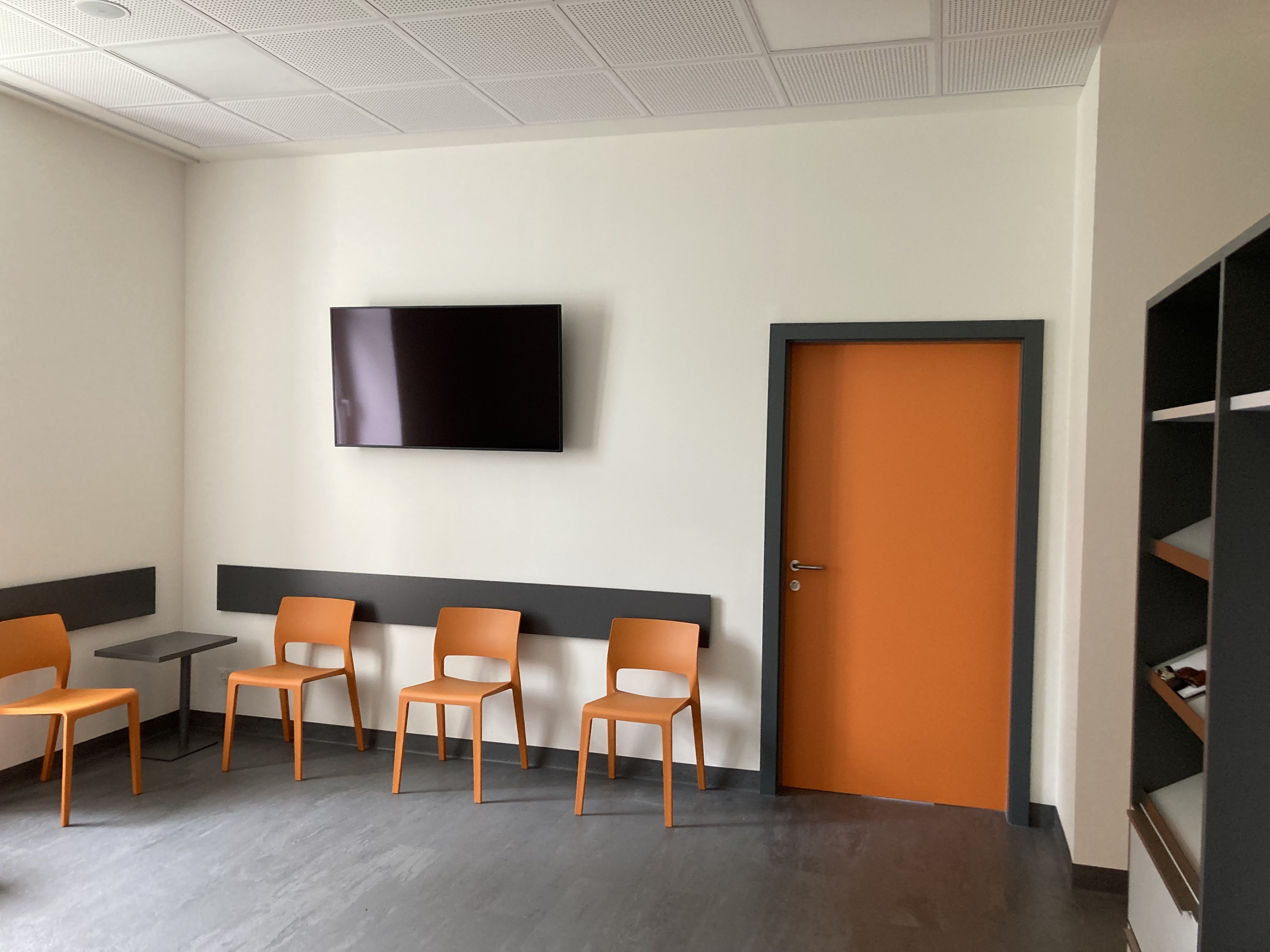 Im Bereich des Erdgeschoßes werden ein Büro mit Empfang, dahinter angeschlossen eine Hausapotheke, ein Wartezimmer, ein Behandlungsraum sowie eine Umkleide und ein Sozialbereich der Mitarbeiter untergebracht. Im Obergeschoss werden ein Schulungsraum, sowie ein großer und ein kleiner Therapieraum situiert. Hier im neu gestalteten Gesundheitszentrum werden zwei verschiedene Ärzte Platz finden.